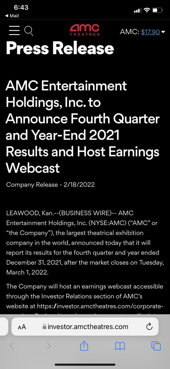 AMC Entertainment Holdings, Inc. to Announce Fourth ... AMC investors can visit https: ... We routinely post information that may be important to investors in the Investor Relations section of our website, . We use this ...
