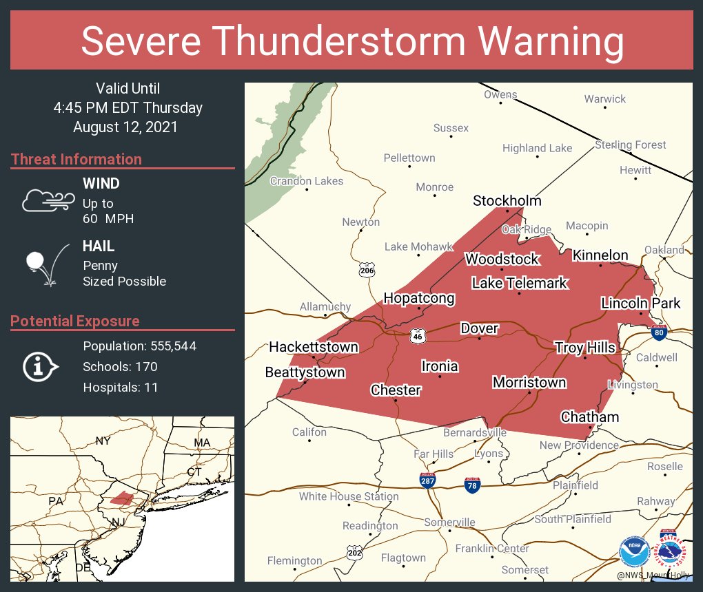 Severe Thunderstorm Warning Nj / Severe Thunderstorm Warning... Severe Thunderstorm Warning Nj. You can find additional resources and coverage on our coronavirus page. There is a low probability of widespread Jun 21, 2021 · a severe thunderstorm watch has been issued for nj with the combination of severe storms, winds up to 60 mph, and...