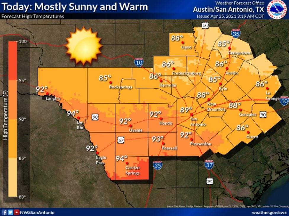 Austin Weather on KVUE in Austin | kvue.com Weather forecast and conditions for Austin, Texas and surrounding areas. KVUE.com is the official website for KVUE-TV, Channel 24, your trusted source for breaking news, weather and sports in ... National Weather Service - forecast.weather.gov Monday. Showers and possibly a thunderstorm, mainly before 1pm, then showers and thunderstorms likely after 1pm. Some of the storms could be severe. High near 82. South wind 15 to 20 mph, with gusts as high as 25 mph. Chance of precipitation is 80%. New rainfall amounts between a quarter and half of an inch possible. Austin, TX Weather Forecast and Conditions - The Weather ... Today's and tonight's Austin, TX weather forecast, weather conditions and Doppler radar from The Weather Channel and Weather.com